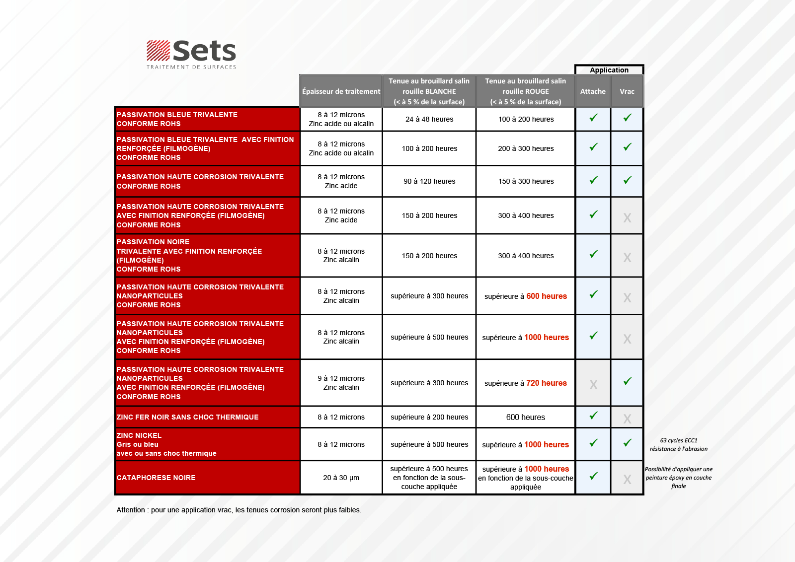 En parallèle, nous proposons également des finitions haute corrosion sans Chrome VI qui garantissent un dépôt conforme à la directive RoHS.